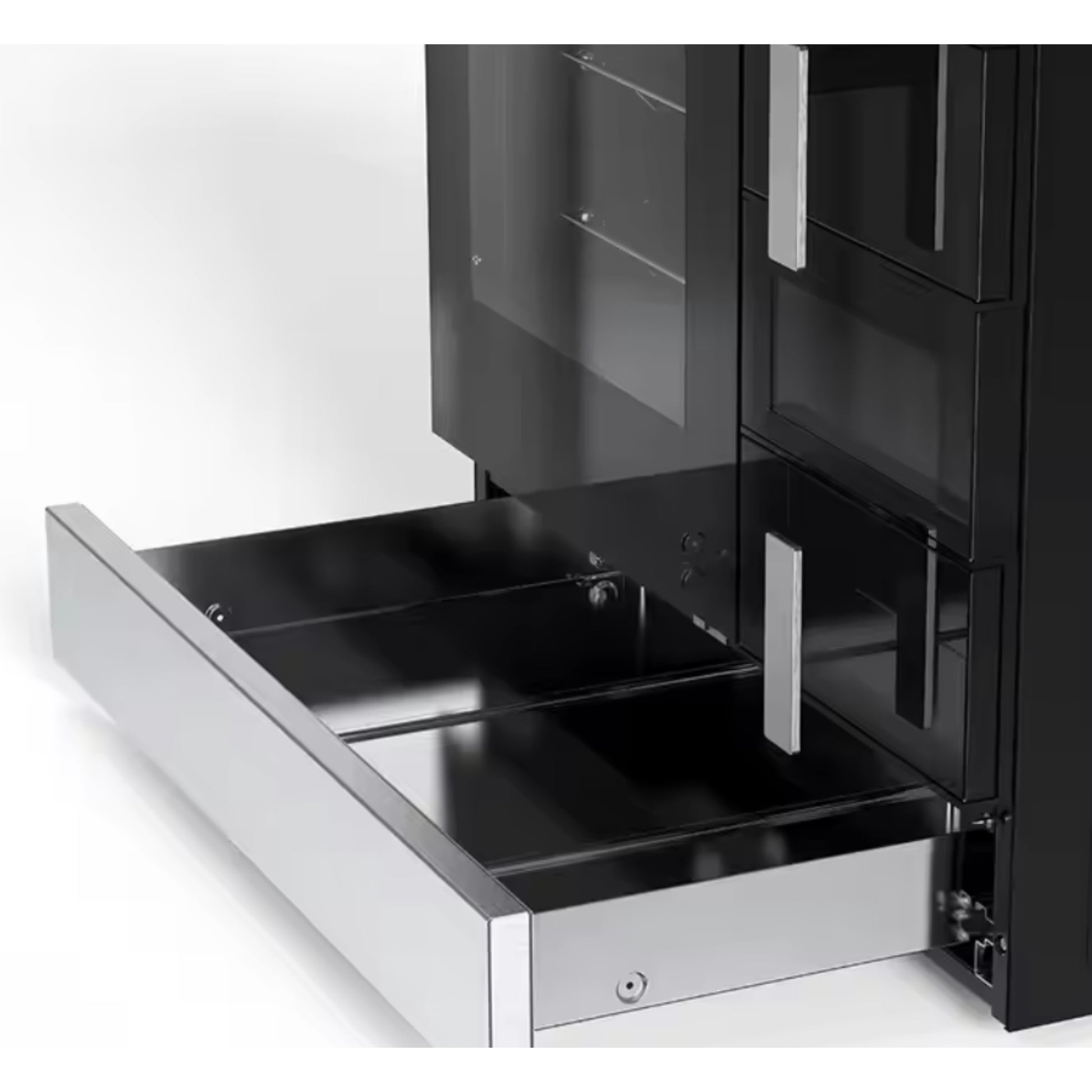 Material: Stainless steel fascia, black enamel cabinet, tempered glass door