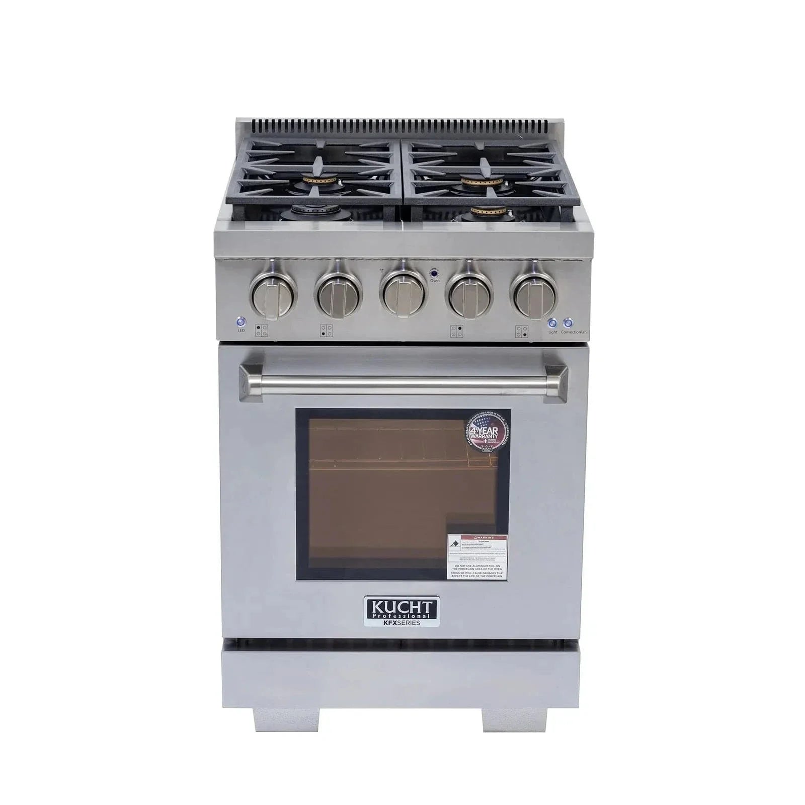 The oven is all porcelain coated, incorporating an internal convection fan assuring every corner receives steady, even, and constant heat. Thanks to this system, Kucht ranges and ovens require less baking time for foods, even allowing the home chef to work at lower temperatures than it would normally take in a conventional oven.